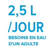 Les besoins en eau d'un adulte en bonne santé sont estimés en moyenne à 1,5 litre d'eau par jour.